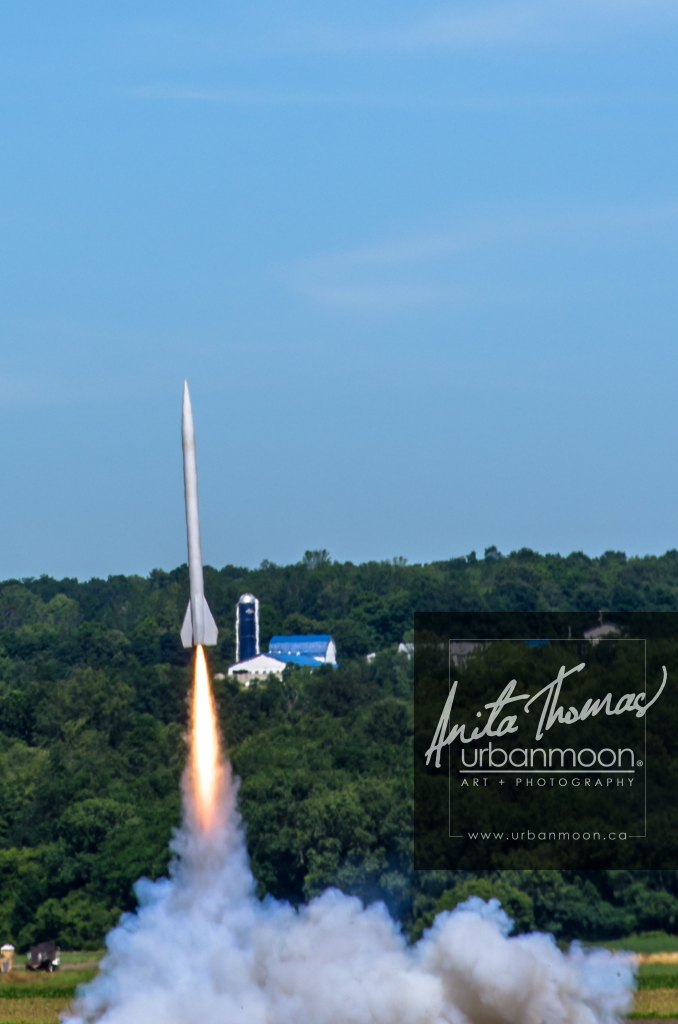 My husband has his Level-3 certification from Tripoli for high-powered rocketry. It is a very exciting hobby, and believe me, these are not the same as model rockets. You work through the different levels of licences after writing exams, building, launching, and recovering your own rockets – each time with increasingly powerful motors. When we launch at events, we notify Transport Canada, or the FAA when in the United States, and obtain waivers giving us clearance to different altitudes. Pilots are notified with NOTAMS to avoid the area. At one of our events, we have a waiver of 15,000 feet MSL with call-in windows of 23,500 feet MSL. These rockets reach Mach 3 – not your model rocket.