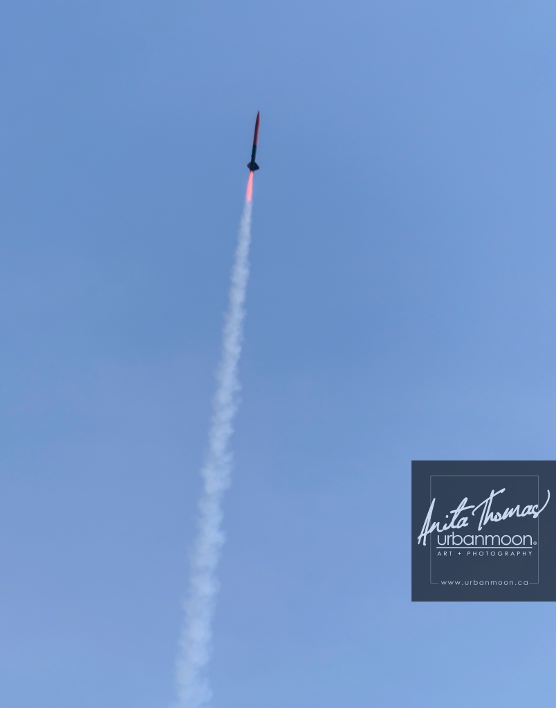 As a spectator, it is thrilling to watch. You can’t help but to shout “WOW!” each time. As a photographer, it is a challenge! At those speeds right off the launch, they are very difficult to catch. These are not massive NASA rockets lumbering slowly off the launch pad. They are relatively small for the amount of power they are packing and really take off. I try to capture the smoke cloud in the instant before take-off, as well as following it up into the sky after launch. Sometimes things go awry including explosions that can also send a rocket sideways. I’m always looking through my lens, but with an ear paying attention to the safety alarm.