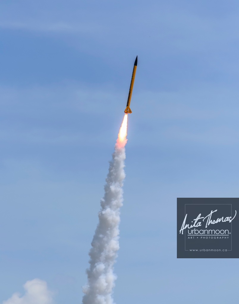 My husband has his Level-3 certification from Tripoli for high-powered rocketry. It is a very exciting hobby, and believe me, these are not the same as model rockets. You work through the different levels of licences after writing exams, building, launching, and recovering your own rockets – each time with increasingly powerful motors. When we launch at events, we notify Transport Canada, or the FAA when in the United States, and obtain waivers giving us clearance to different altitudes. Pilots are notified with NOTAMS to avoid the area. At one of our events, we have a waiver of 15,000 feet MSL with call-in windows of 23,500 feet MSL. These rockets reach Mach 3 – not your model rocket.